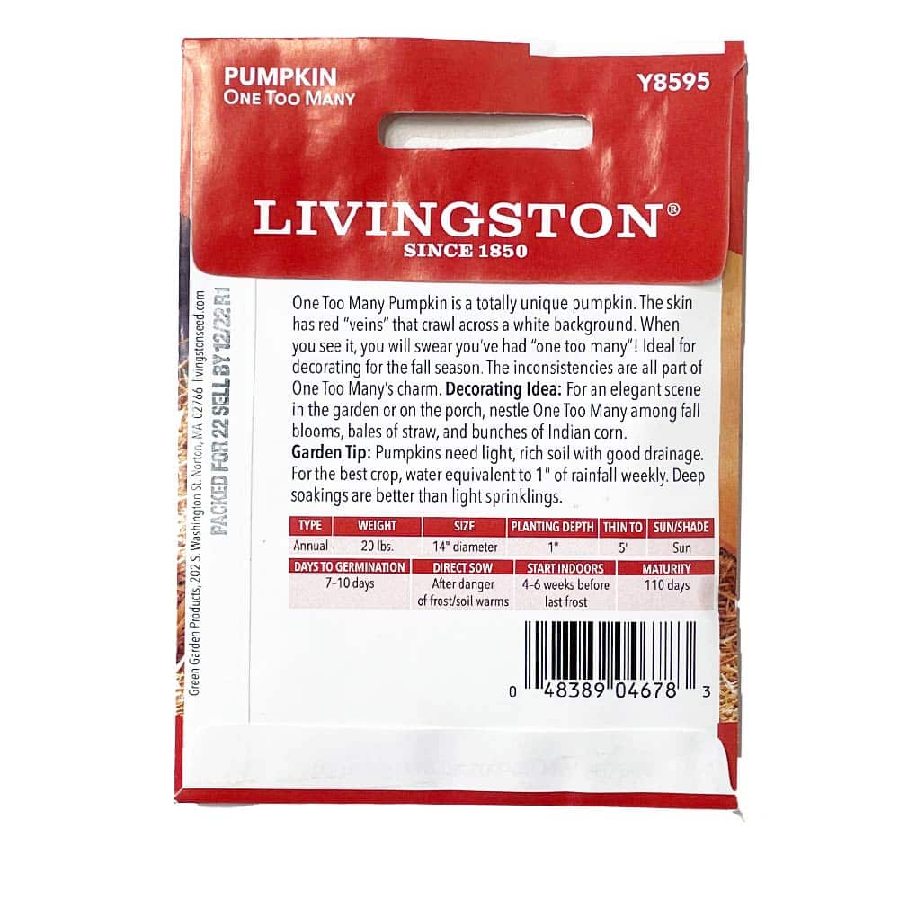 One Too Many Pumpkin is a totally unique pumpkin. The skin has red “veins” that crawl across a white background. When you see it, you’ll swear you’ve had one too many! Ideal for decorating for the fall season.