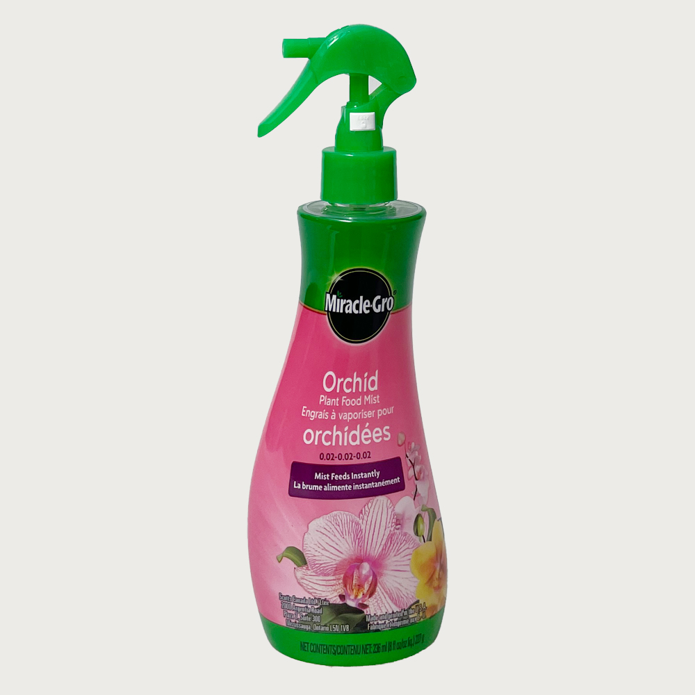 In addition to regular watering, use this orchid plant food mist to lightly spray leaves, roots, and growing media once per week to instantly feed your orchids. Take care to avoid spraying the flowers.
