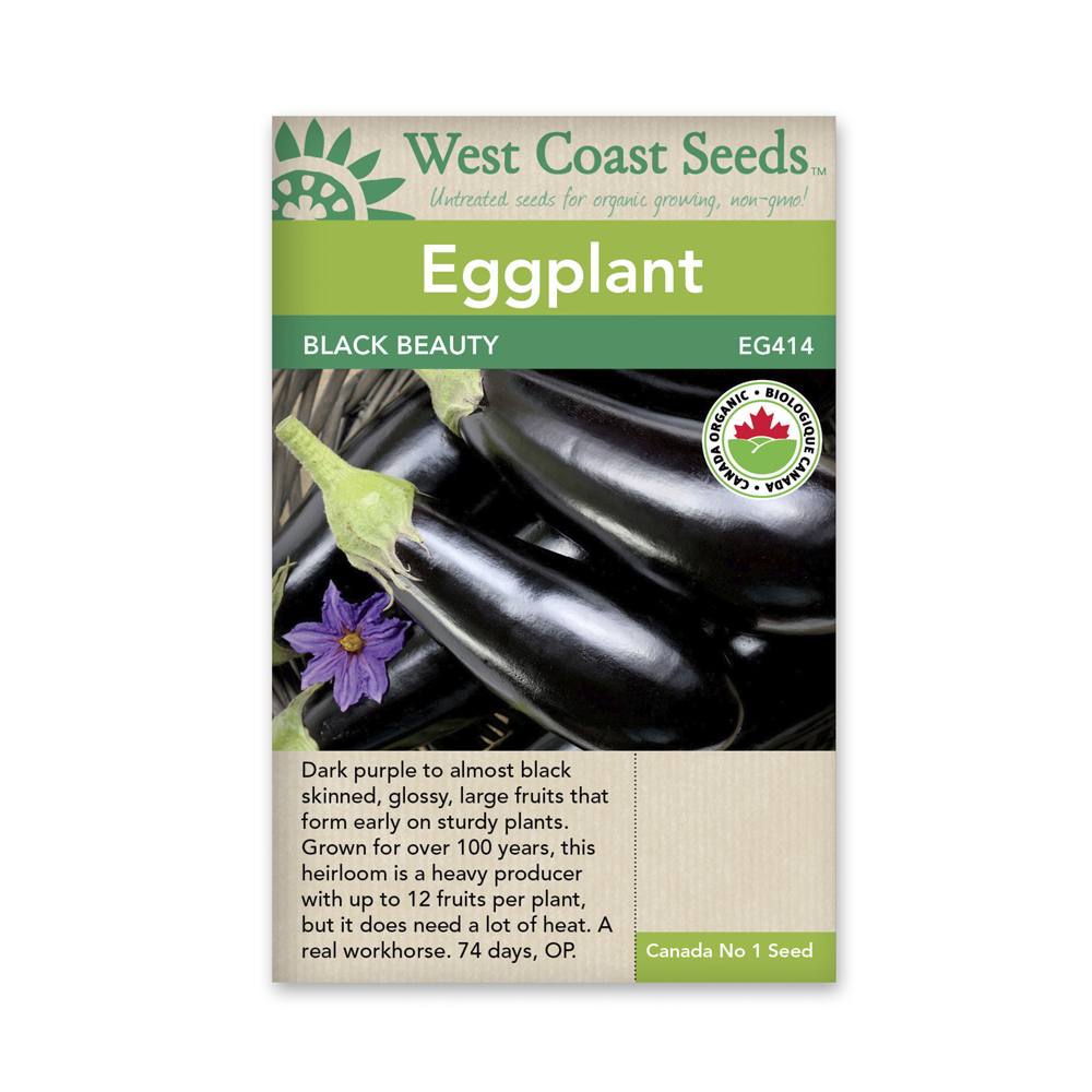 Dark purple to almost black skinned, glossy, oblong, large fruits that form early on sturdy plants. Grown for over 100 years, this heirloom is a heavy producer with up to 12 fruits per plant, but needs lots of heat. Try it under a cloche or with some plastic mulch over the soil. Even without extra help Black Beauty Organic eggplant seeds will be productive in coastal gardens. Expect eight to ten fruits per plant. This variety performs well in containers that are five gallons or larger. Half barrels would be perfect.
