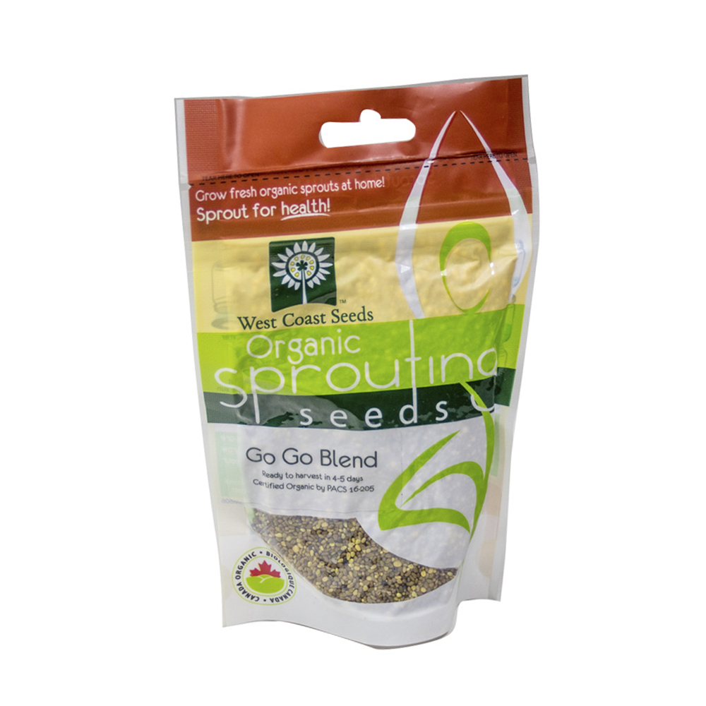 The Go Go Blend organic sprouting seeds includes alfalfa, red clover, red radish, yellow mustard, and fenugreek for an amazing combination of flavours and textures. It’ll add a zing to your salads and sandwiches. It also contains the combined health benefits of all these delicious sprouting seeds. Get the most out of your sprouts with the Go-Go Blend organic sprouting seeds.