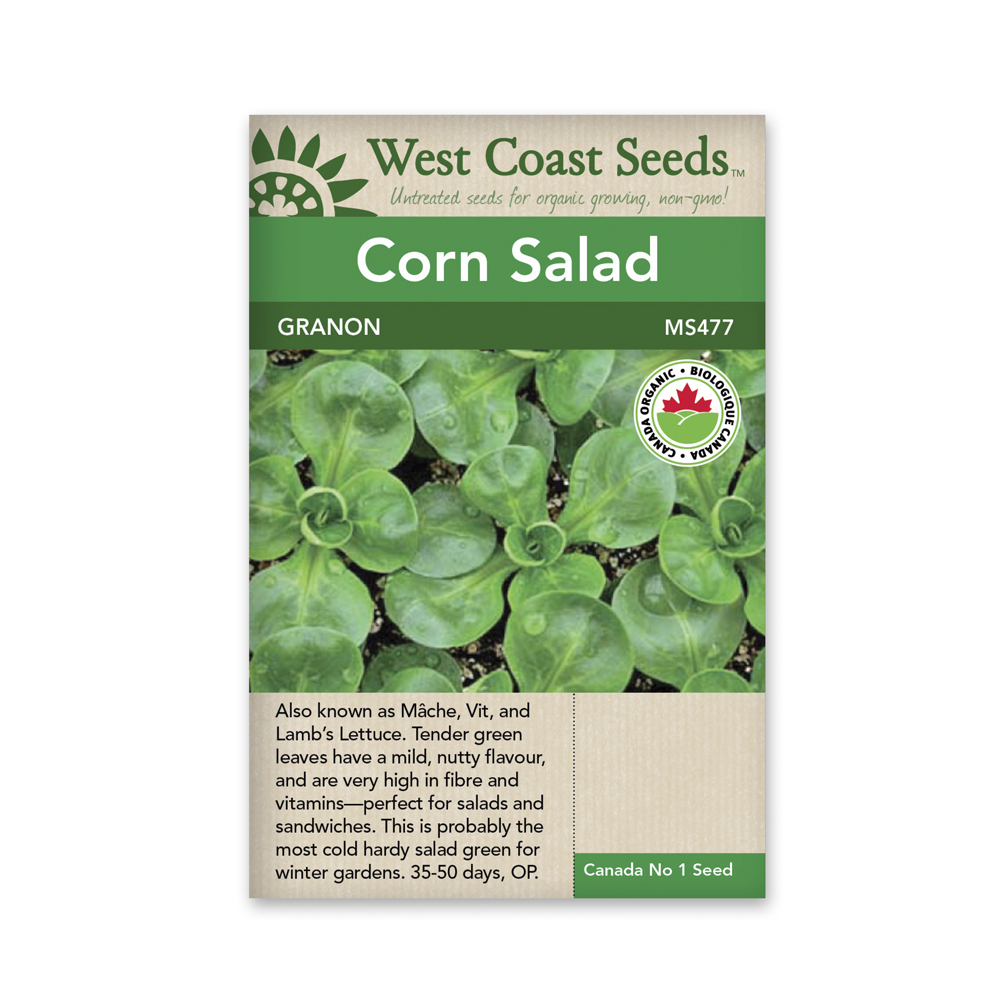 Granon Organic Corn Salad Seeds are CERTIFIED ORGANIC and quick to grow. Granon is a particularly robust corn salad with high yields. Granon Seeds produce a plant with round and thick leaves, and a wide leaf blade up to the beginning of the stem. Even if maturity is exceeded, the leaves stay round and succulent. This cool season crop is not widely known in North America, but is much loved in Europe. It is easy to grow, very nutritious, and grows all winter in mild climates.