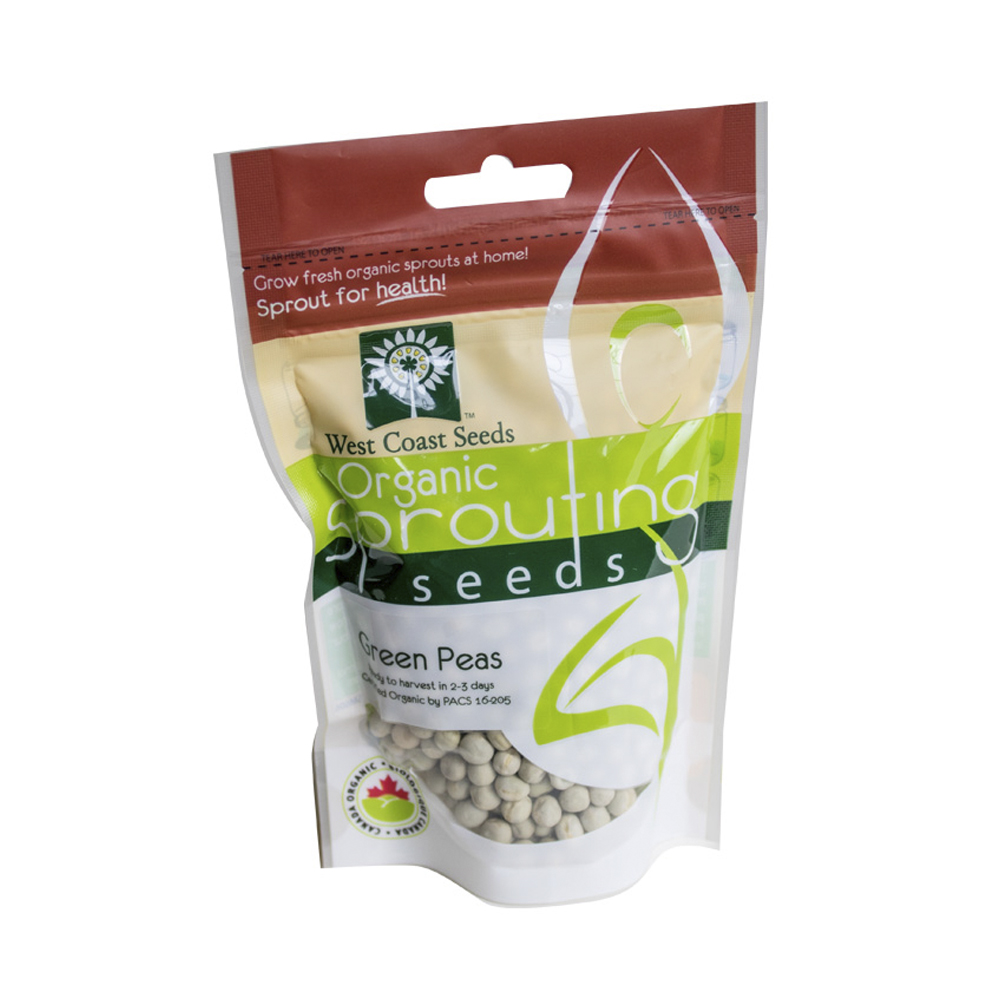 Green peas organic sprouting seeds produce large, mild sprouts. Some growers like to enjoy pea sprouts just after germination. At this stage they are still crunchy and sweet like freshly picked garden peas. Others prefer to let the root and stem grow for a day or two, and harvest them more like long pea shoots. Green Peas also make splendid microgreen pea shoots if grown in soil. No matter how they are grown, pea sprouts have an appealing texture and flavor.