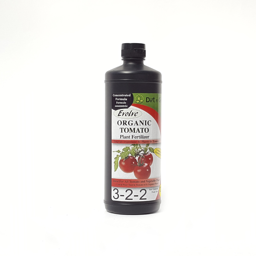 EVOLVE Tomato liquid organic fertilizer is derived from digested vegetable meal, bat guano, citric acid and kelp meal. It also supplies .7% immediately available Calcium to your Tomato plant to help prevent the onset of blossom end rot.