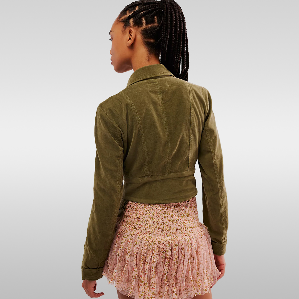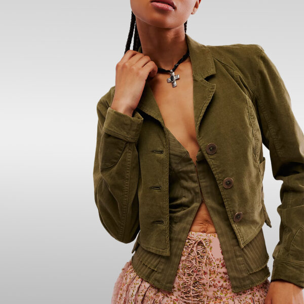 Get an instantly layered look with this unique twofer jacket, featuring a stretchy cropped cord outer layer with a vest-inspired inner layer for an effortlessly chic look. This double-layer design makes for a unique addition to your jacket collection.
