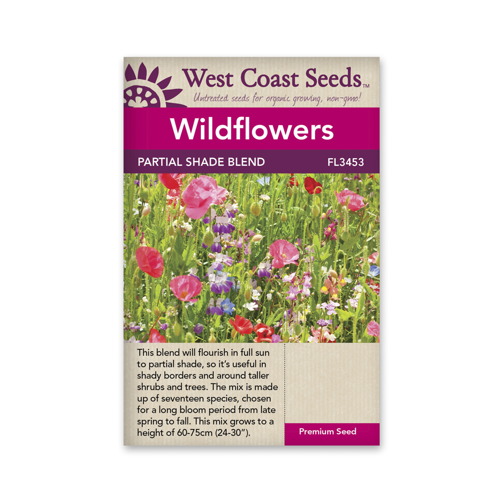For those hard-to-establish areas that are shaded; this mix will work very well with about 40% sunshine. All flowers do best in full sun, but the ones in this Partial Shade Mix will flourish and prosper with filtered sun. Partial Shade Mix wildflower seeds are made up of eighteen species, of which annuals make up approximately 55% and the perennial/biennials make up 45%. This mix grows to a height of 60-75cm (24-30″). Recommended rate of application: 141g per 1,000 square feet. Loosen the surface of the soil by lightly raking the area; then, sprinkle the contents of this package on soil. Water and keep the area damp until the seedlings appear, and then enjoy a grand display of blooms all summer long.