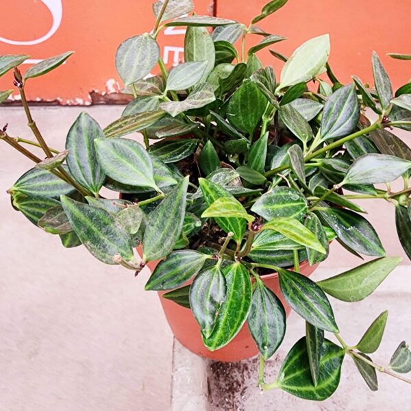 Peperomia Beetle is a trailing houseplant that displays succulent stems and elliptic, emerald green striated leaves like a beetle’s shell. Easy to grow in a cascading basket, this plant requires minimum care and maintenance! Comes in a 4″ pot.