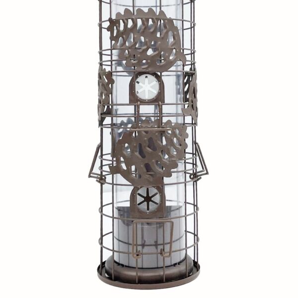 Our Pinecone Squirrel Resistant Feeder is loved by birds and hated by squirrels! A squirrels weight will activated the seed shield, keeping them out of your bird seed. Less rodents at the feeder means less spilled seed, saving you money. The pinecone design is perfect for fall and winter birdwatching!