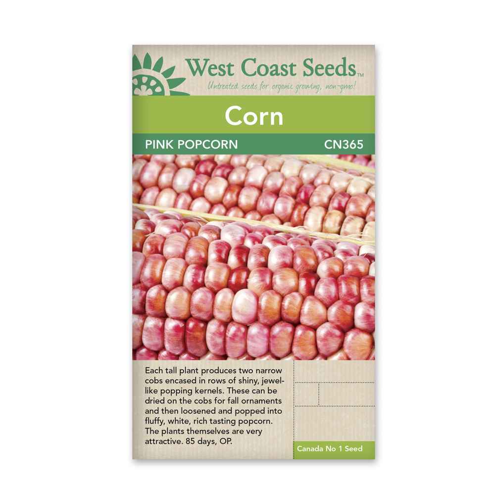 This early maturing popcorn has tall plants with two ears each, that average 13-15cm (5-6″) long. Pink Popcorn corn seeds produce excellent popping corn that yields lots of fluffy white kernels with a great rich flavour. The beautiful pink to mauve kernels are attractive for decoration. This is not a variety for eating corn on the cob, but rather for drying and popping. The stately tall plants are attractive in the summer garden.