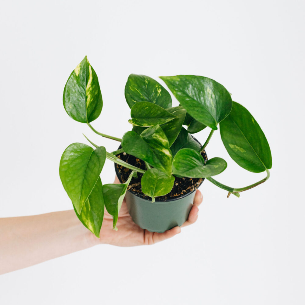 Pothos Golden is commonly grown as a houseplant, boasting pointed, heart-shaped green leaves that are sometimes variegated with white, yellow, or pale green striations. In nature, every plant is unique! Your actual plant may vary in size and shape from the pictured plant. Comes in a 4″ pot size.