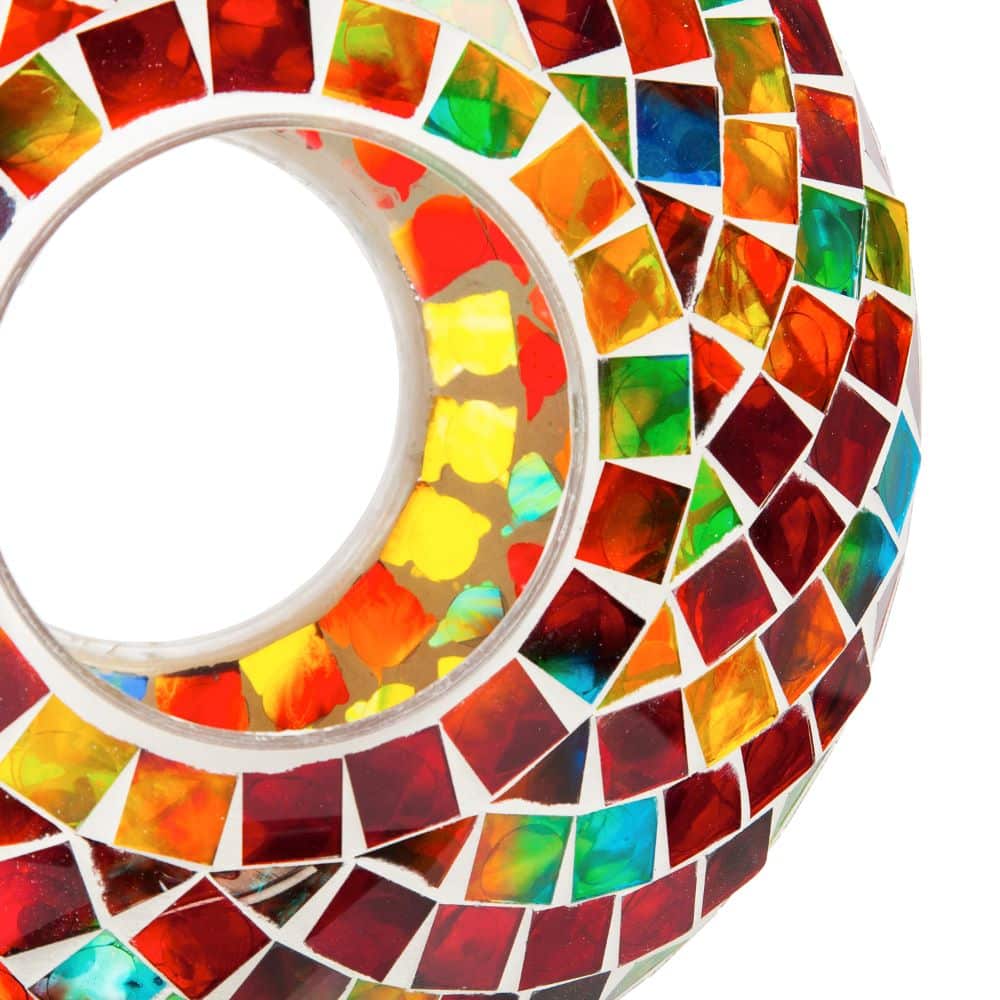 Create a mesmerizing oasis in any garden while feeding feathered friends with this Rainbow Mosaic Glass Birdfeeder. Enjoy the beauty of nature by attracting birds from near and far. The unique mosaic feeder combines pieces of multicolored glass to create a stunning design that elevates any outdoor space. Birds are able to feed from both sides of this circle design.