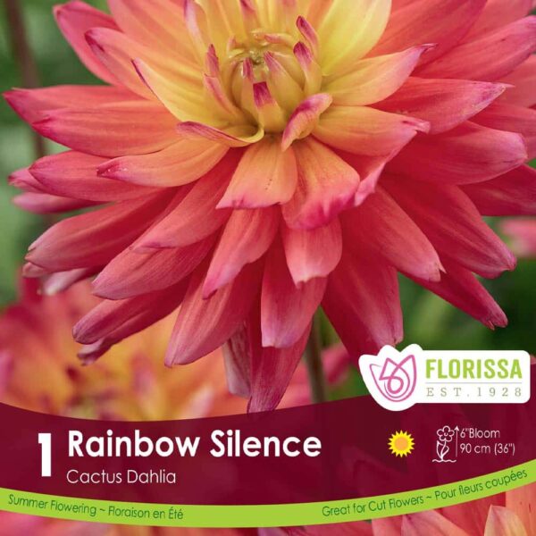 Rainbow Silence Dahlia Bulbs make stunning cut flowers, with full 6″ blooms.