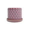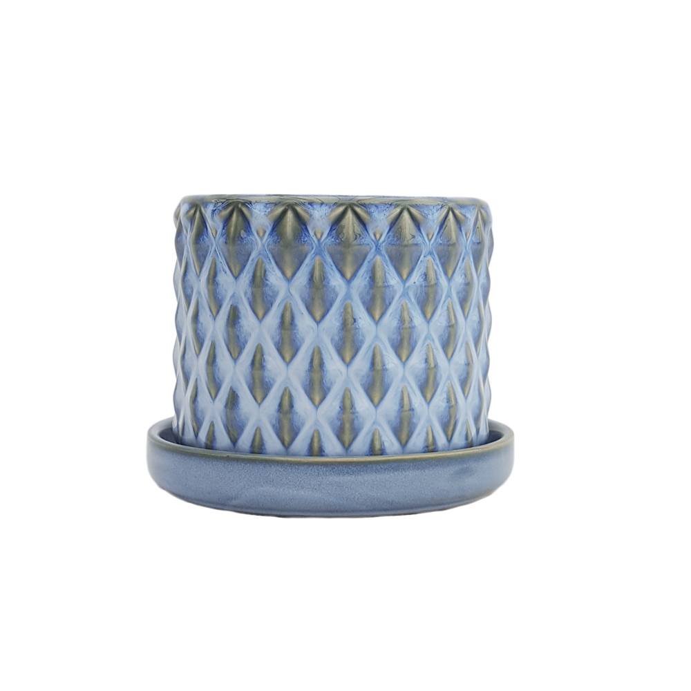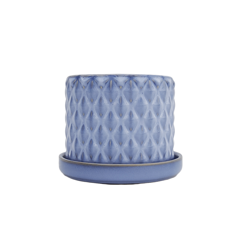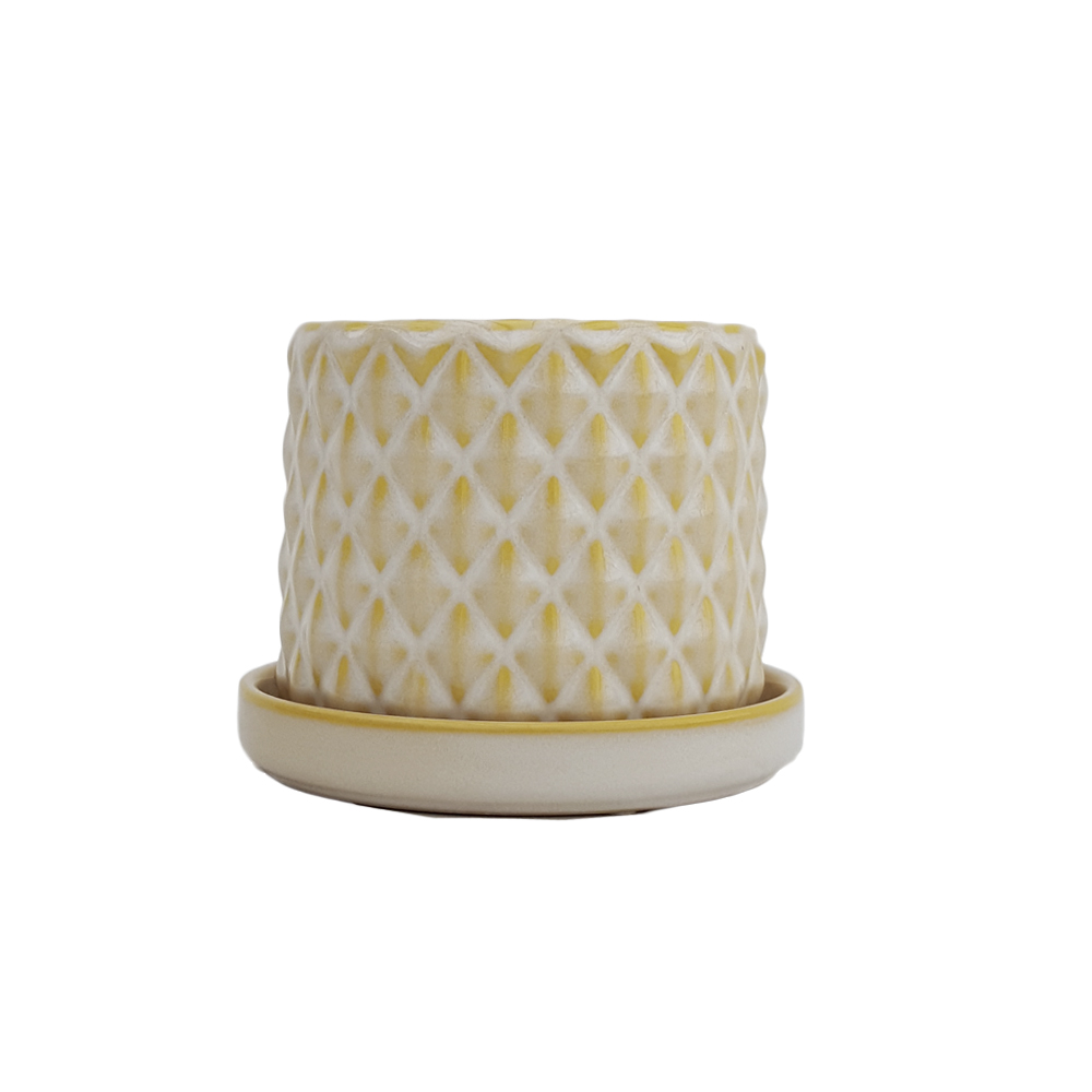 Our Diamond Pot (4″) features a lovely pattern and a beautiful, richly coloured glaze. It also has an attached saucer for easy plant care. A cheerful little addition to your plant + pottery collection!