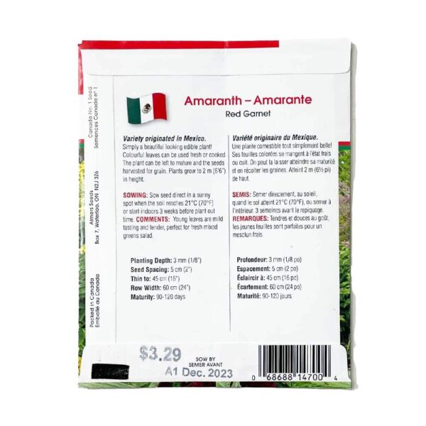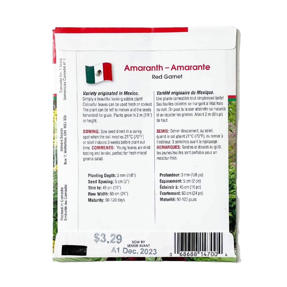 Red Garnet Amaranth is simply a beautiful looking edible plant! Colorful leaves can be used fresh or cooked. The plant can be left to mature and the seeds harvested for grain. Plants grow 2m in height.