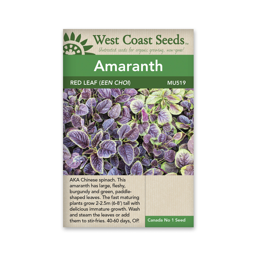 Amaranthus tricolor. Also known as Chinese spinach. This heat lover is a very nutritious leaf vegetable. This variety has large, fleshy, pale-green or burgundy and green leaves that can be enjoyed raw in salads. They can also be cooked quickly, faster than spinach. Plant Red Leaf amaranth seeds in early summer in warm soil with good drainage. Enjoy as micro-greens, baby leaf salad greens, or full size cooked greens. The flavour pairs well with garlic and oyster sauce. The plants reach about waist high before flowering in late summer. Be sure to harvest before the flowering stage for the best flavour.