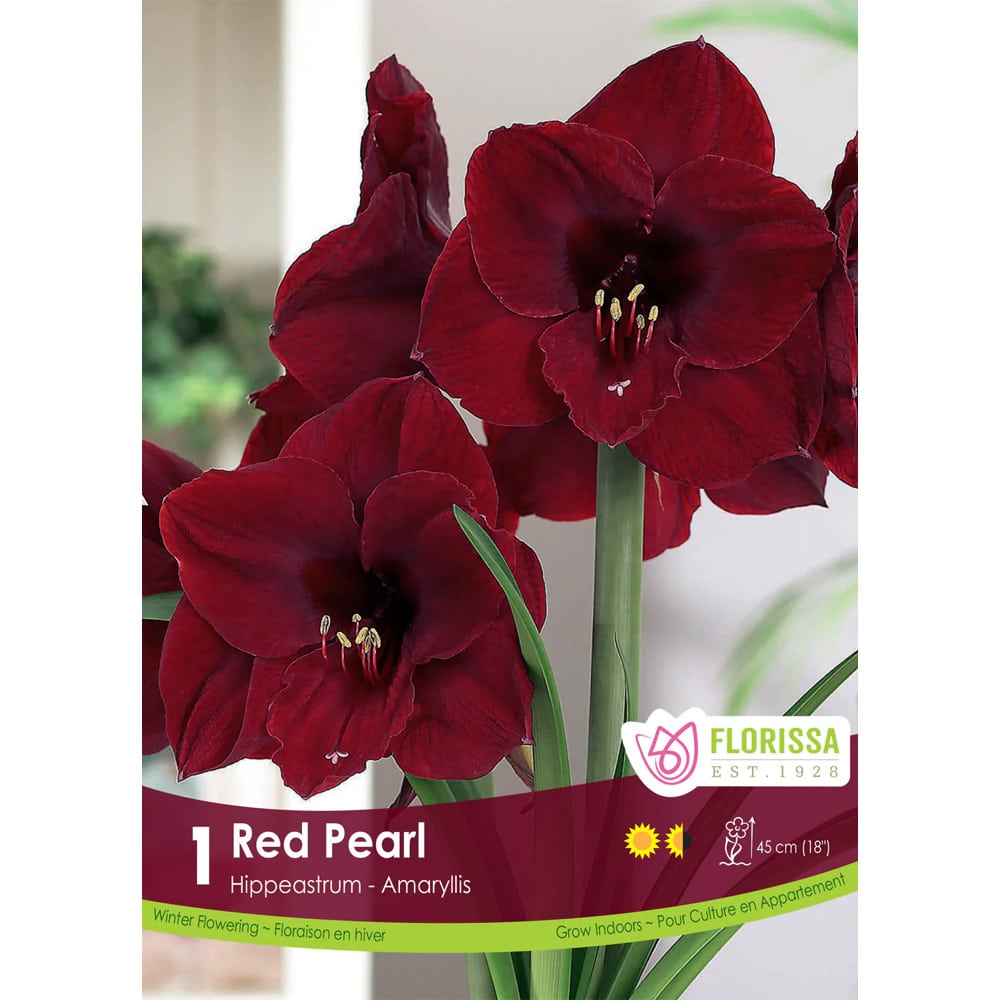 Elegantly rising up to 20″, each Red Pearl Amaryllis Bulb bulb produces four flowers per stem and blooms 6-10 weeks after planting. Incredibly easy to plant, it provides weeks and even months of bloom indoors as potted plants or cut flowers.
