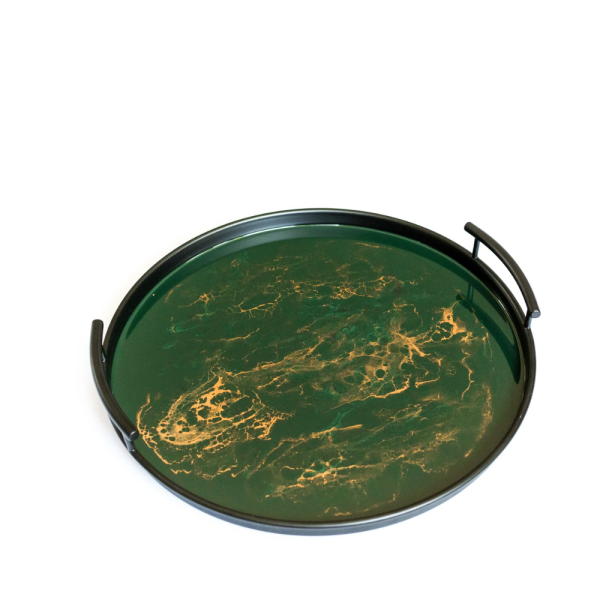 Blending beautiful matte black finished iron with an eco-friendly resin, Lynn & Liana metal trays are both beautiful and functional. Each piece is hand-made and meticulously crafted, making it a one-of-a-kind work of art. They seamlessly blend function with style and make a statement at every gathering by adding a pop of color and visual interest to any countertop or dining table.