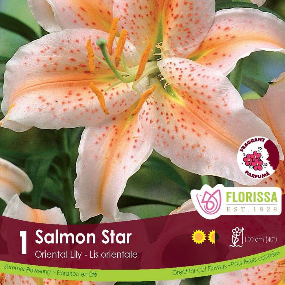 Salmon Stargazer Lily Bulbs have stunning speckled blooms in pink tones.