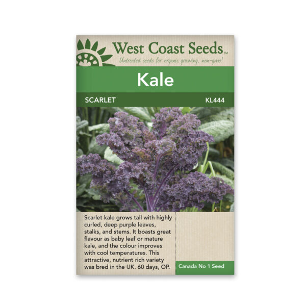 A beautiful new variety from UK breeding, Scarlet kale seeds produce plants that grow tall, with highly curled leaves, almost as dark purple as Redbor. Scarlet has great flavour either as baby leaf or mature kale, and the flavour improves (along with the colour) after frost. This is a handsome, ornamental, and very edible kale to try in your organic vegetable garden. Plan short rows of Scarlet for early spring, then for summer, and finally for fall and winter harvests. Chopped or minced raw kale contains the highest amount of sulforaphane, the compound thought to have powerful cancer-fighting properties. Boiling kale loses much of this property, while steaming and microwaving have less impact.