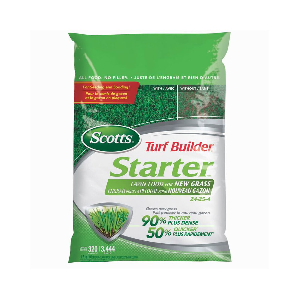 Scotts Turf Builder Starter Lawn Food helps your grass grow thicker and quicker versus unfed grass.  This product is suitable for newly seeded or sodded lawns and over seeding.  The high phosphorous content promotes strong a strong root system.