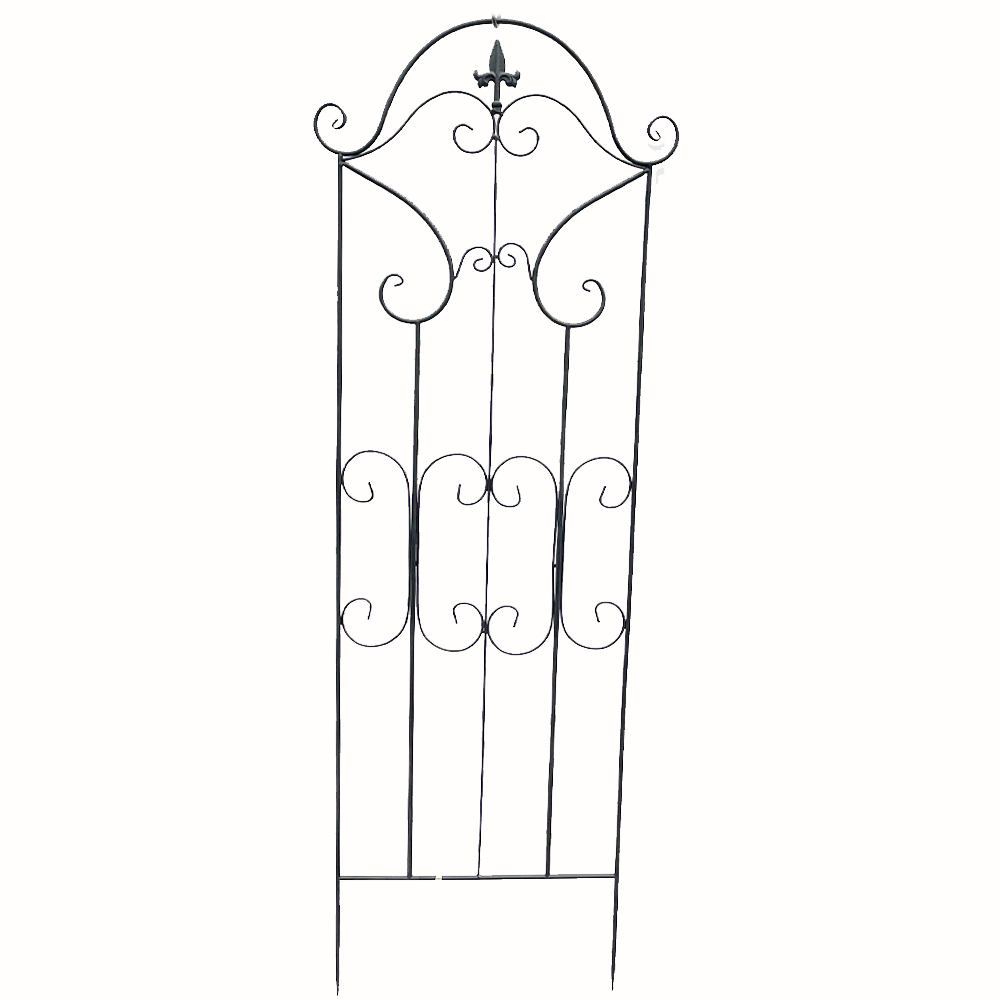 This decorative scroll trellis will make a great addition to your flower beds! Crafted out of sturdy metal with sharp stakes on the ends, make it great to use with climbing vines.