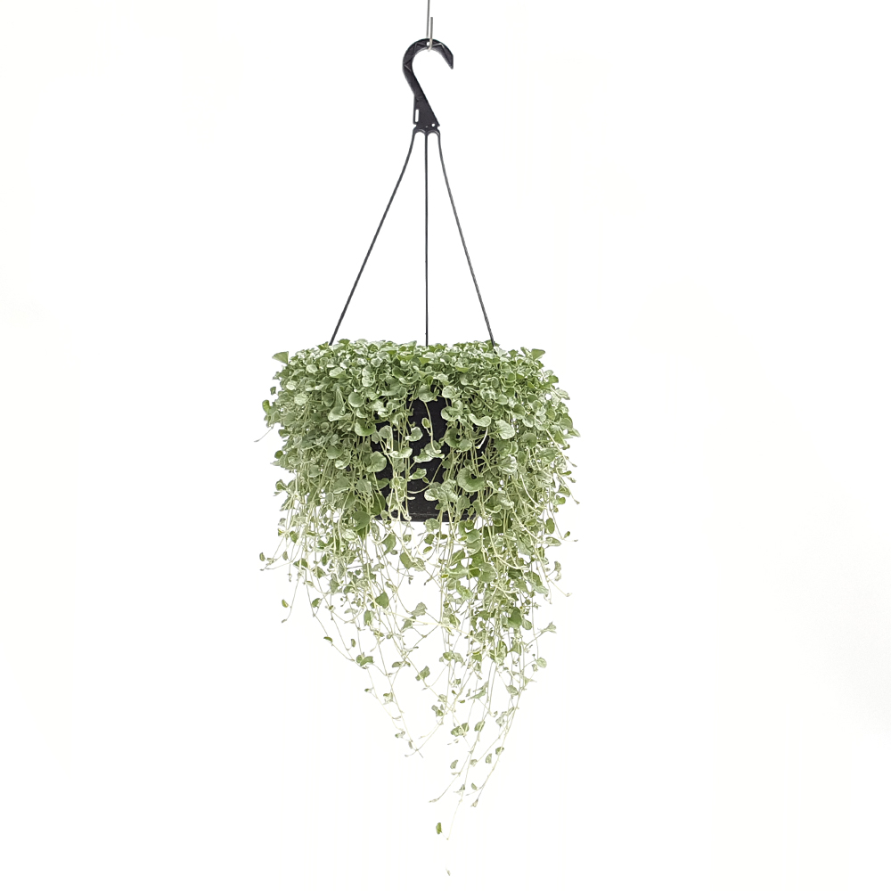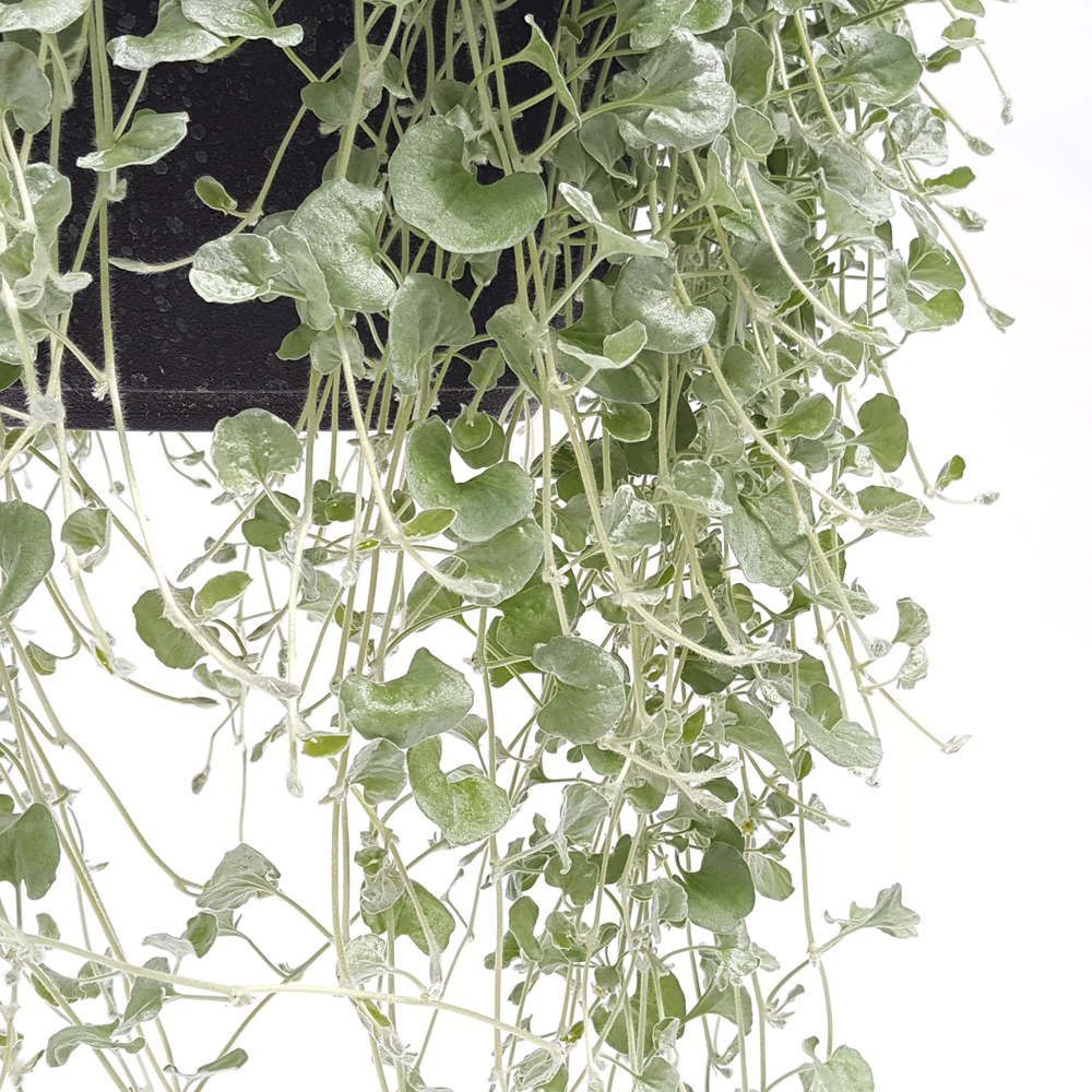 Silver Falls Dichondra’s tiny fan-shaped leaves remain grayish green in colour with hints of silver throughout the season. It is an herbaceous annual bedding plant with a trailing habit of growth, eventually spilling over the edges of hanging baskets and containers. It brings an extremely fine and delicate texture to the garden composition.