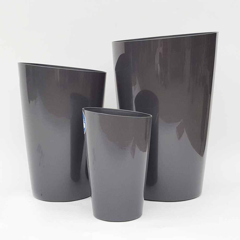 Our Slate Mirage Collection of pots feature a uniquely angled shape that will give flair to your indoor and outdoor plants. Its raised, interior saucer allows for the options of self-watering and overflow protection. You can either drop your grower pots into it, or plant annuals directly into it.