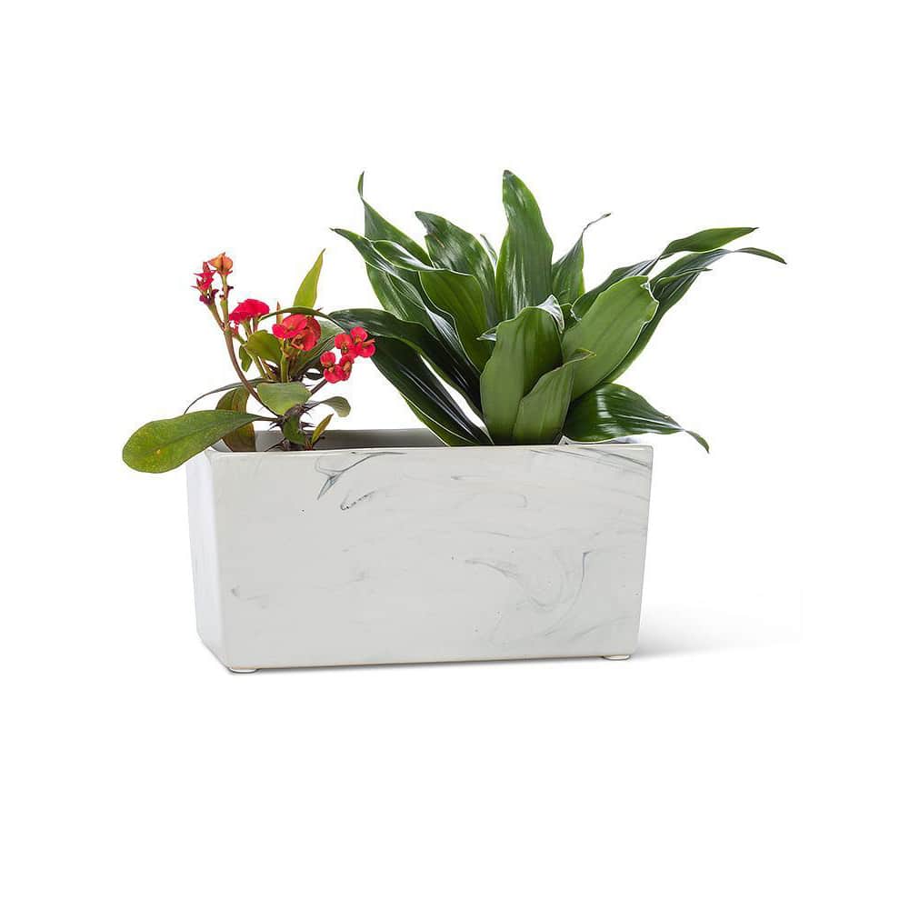 Add some elegance to any plant, flower or succulent with this majestic Marble Look Small Rectangular Planter. Crafted out of stoneware with a rich marble-like finish, the minimalist charm of this striking planter makes a memorable addition to any decor. Make sure you also stop by our greenhouse and grab a plant for your new pot!