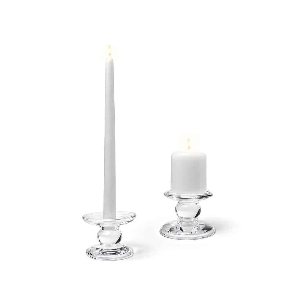 That’s innovation! This elegant reversible glass candle holder can hold tapers on one side and pillars on the other. Flip to suit your needs!