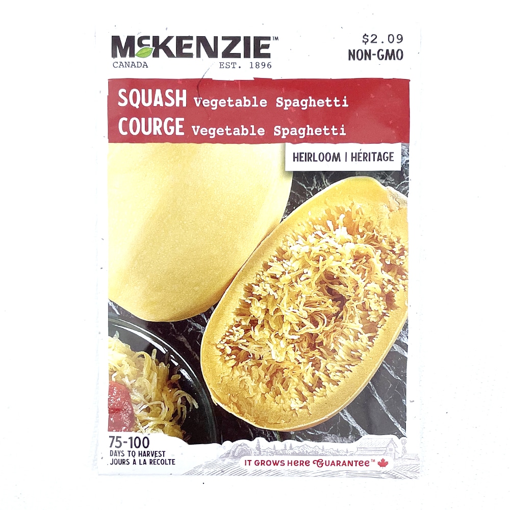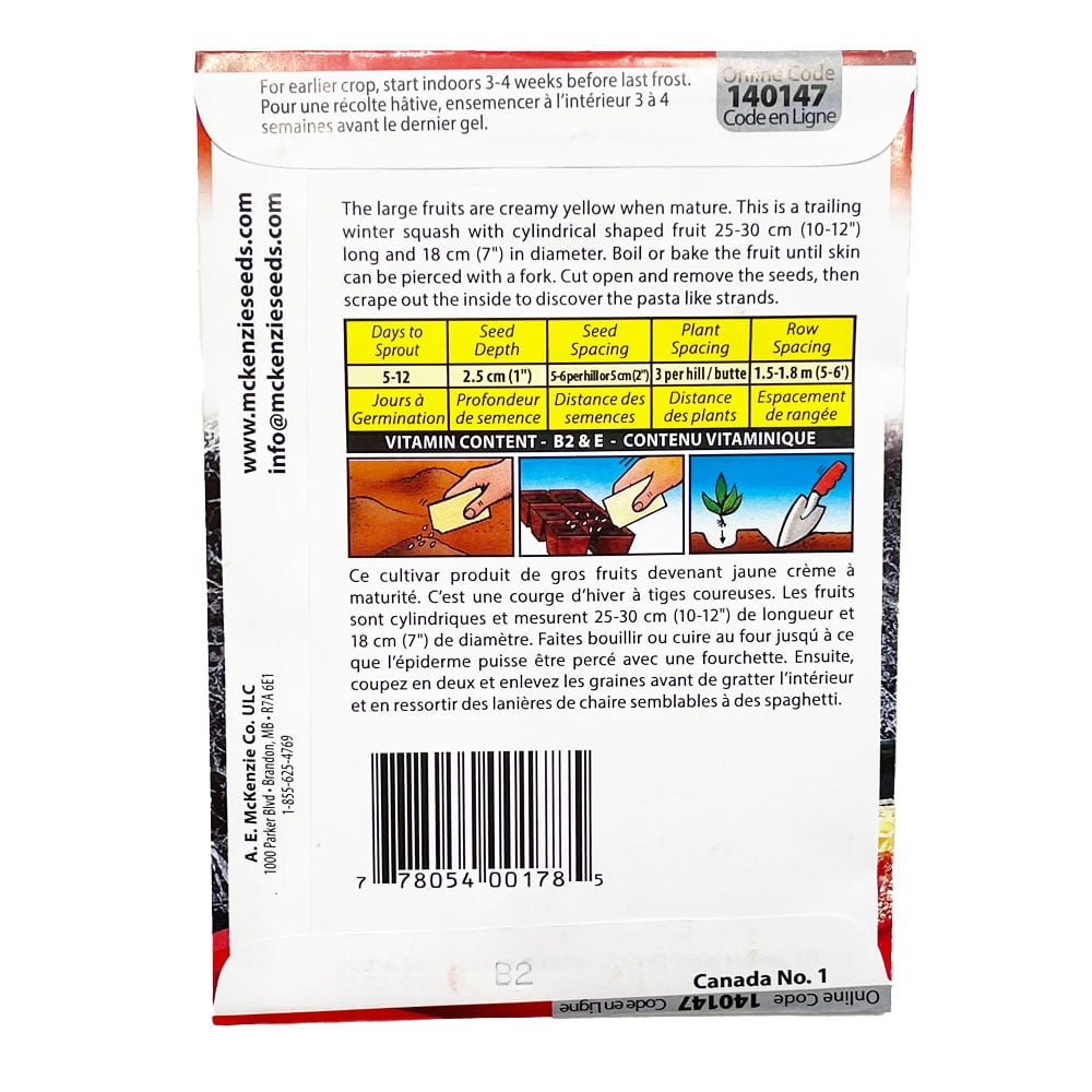 Vegetable Spaghetti Pasta Squash are large and creamy yellow when mature. This winter squash grows cylindrical shaped fruit 25-30 cm (10-12″) long and 18 cm (7″) in diameter on trailing vines. Cut open the squash, remove the seeds, then scrape out the inside to discover the pasta-like strands.