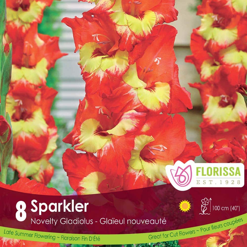 Sparkler Gladiolus Bulbs have spikes of blooms in striking hues of orange, red and yellow.