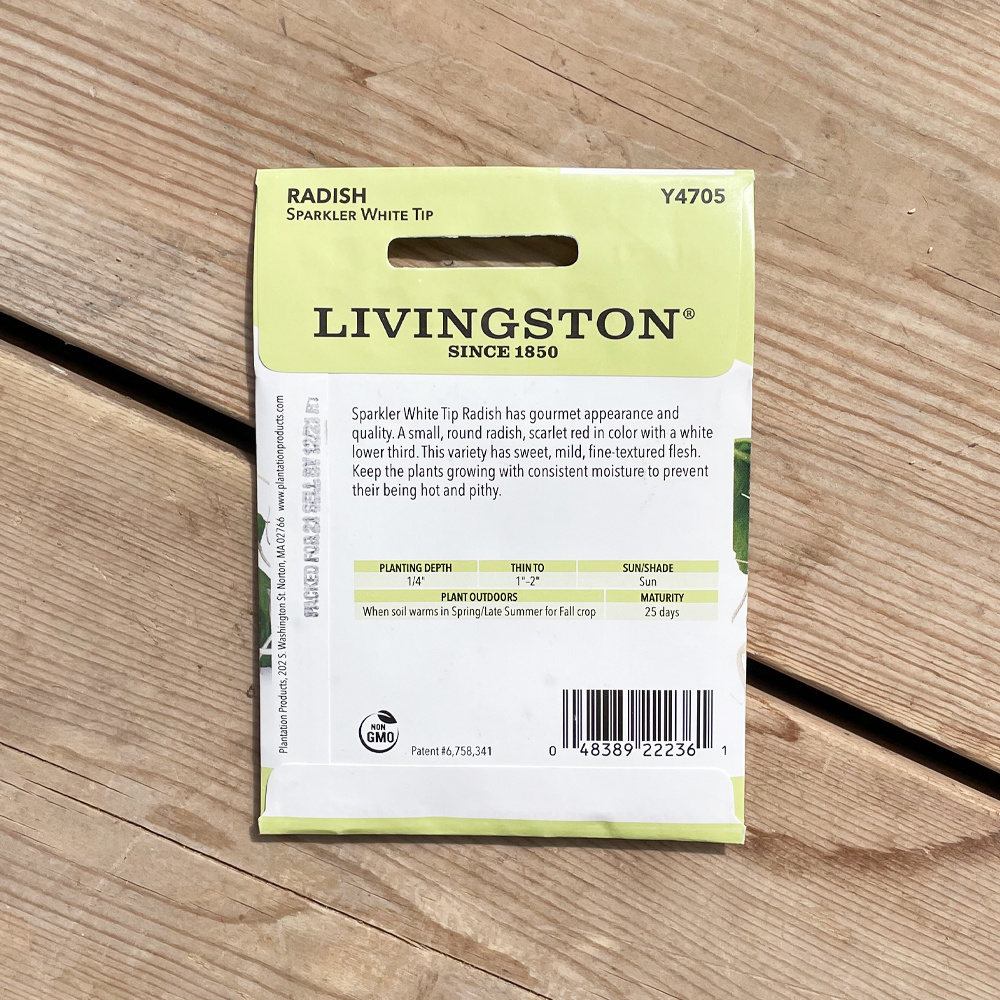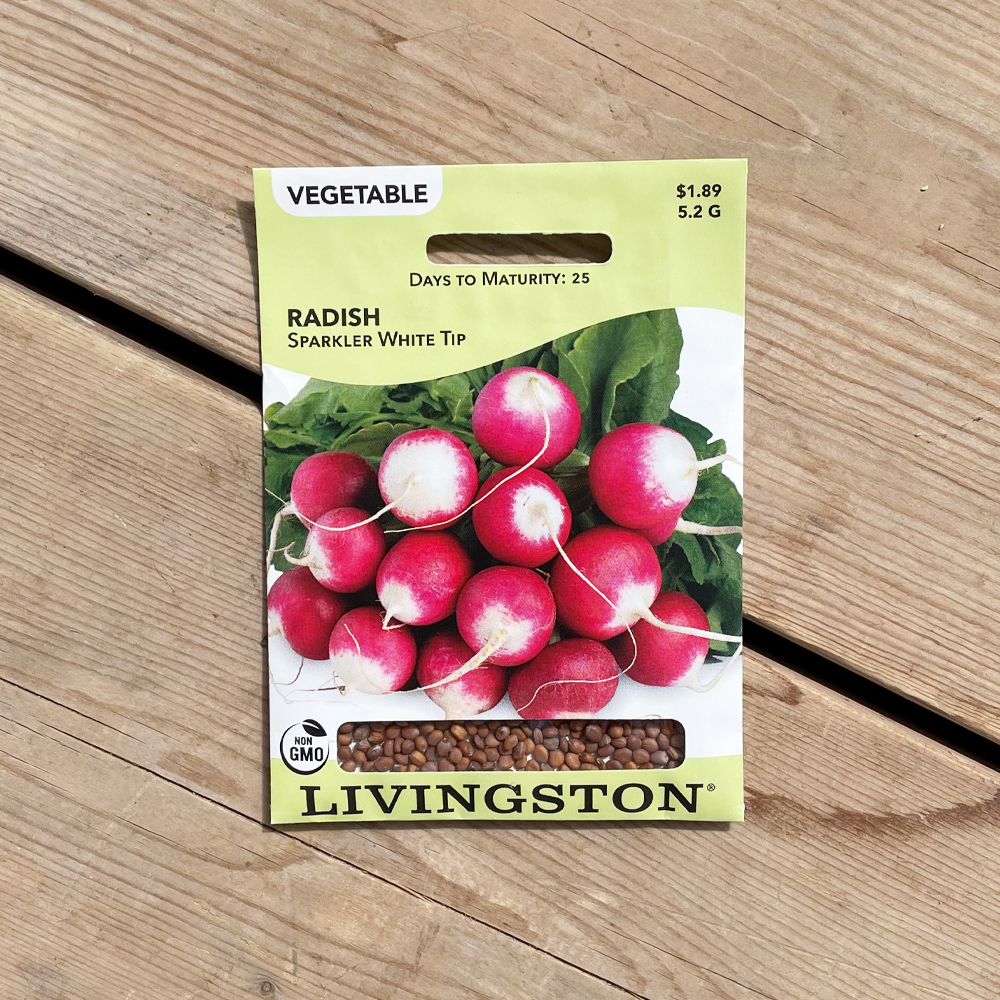 Sparkler White Tip Radish has gourmet appearance and quality. A small, round radish, scarlet red in colour with a white lower third. This variety has sweet, mild, fine-textured flesh. Keep the plants growing with consistent moisture to prevent being hot and pithy.