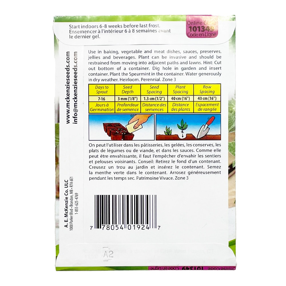 Spearmint is a beautiful and versatile herb. It can be used in baking, vegetable and meat dishes, sauces, preserves, and more! A great choice for home gardens as it is hardy to Zone 3. Spearmint, however, can be invasive if allowed to spread freely and should be planted in a container. We also encourage you to water generously in dry weather.