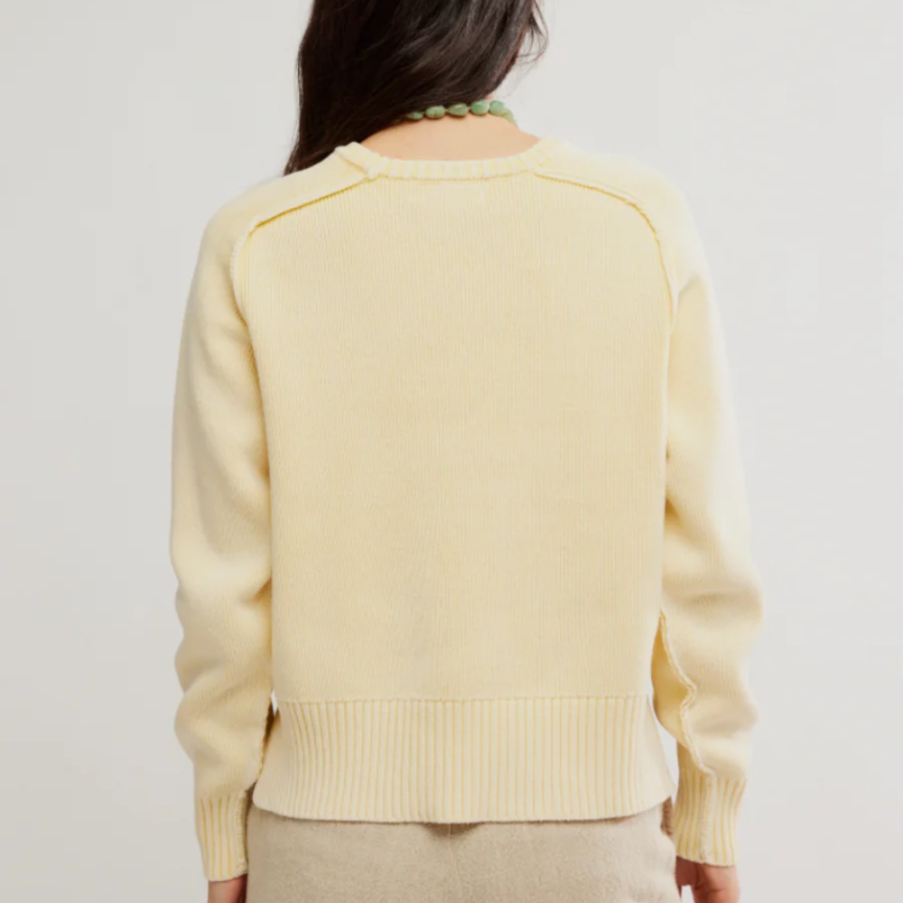 The Free People Spring Street Pullover offers a fresh take on cozy layering with its soft knit texture and relaxed silhouette. Designed for effortless styling, this pullover features a slightly oversized fit, making it perfect for pairing with your favorite denim or layering over dresses. Ideal for transitional weather, the Banana Cream color adds a warm, cheerful touch to your wardrobe.