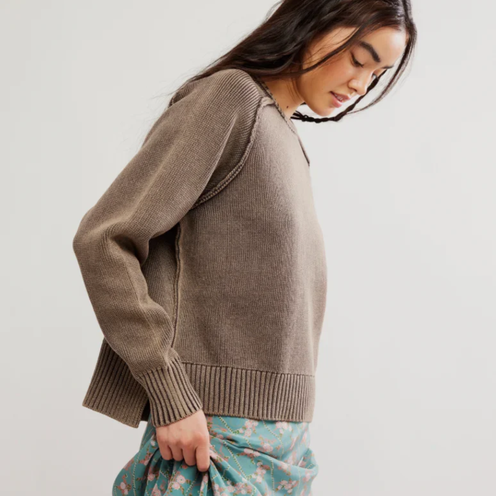 The Free People Spring Street Pullover offers a fresh take on cozy layering with its soft knit texture and relaxed silhouette.