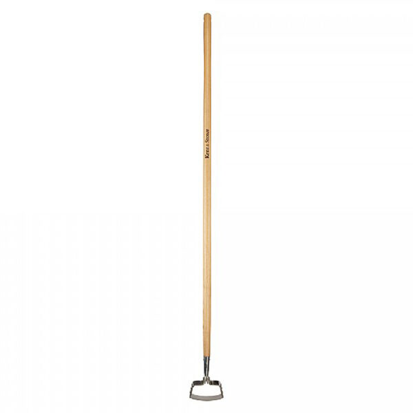Our traditionally styled, high quality Oscillating Garden Hoe by Kent & Stowe is made from high quality stainless steel and beautiful ash wood. The most common use of the Oscillating Hoe is to drive forward with the blade digging in about 1/2 inch into the surface. This works wonders on small weeds and freshly sprouted grasses. Its double edge blade cuts weeds when used in a push-pull motion, and its self-sharpening blade travels easily below the soil surface to slice through weeds.