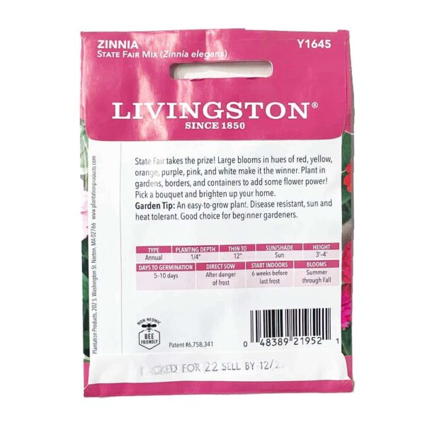 State Fair Mix Zinnia takes the prize! Large blooms in hues of red, yellow, orange, purple, pink and white make it the winner. Plant in gardens, borders and containers to add some flower power! Pick a bouquet and brighten up your home.