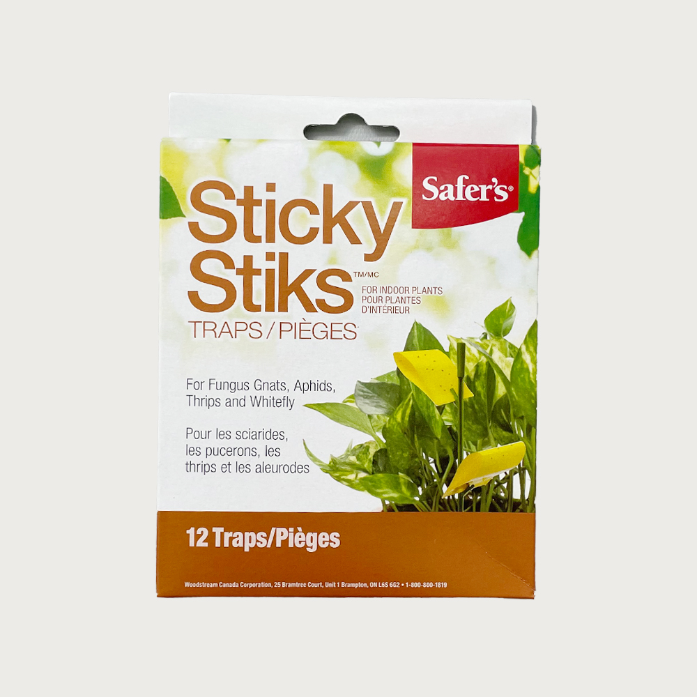 These bright yellow traps attract fungus gnats, aphids and other flying insects. Sticky Stiks catch insects and stops adults from reproducing and infesting other plants. Each pack comes with enough traps for 12 average size houseplants.