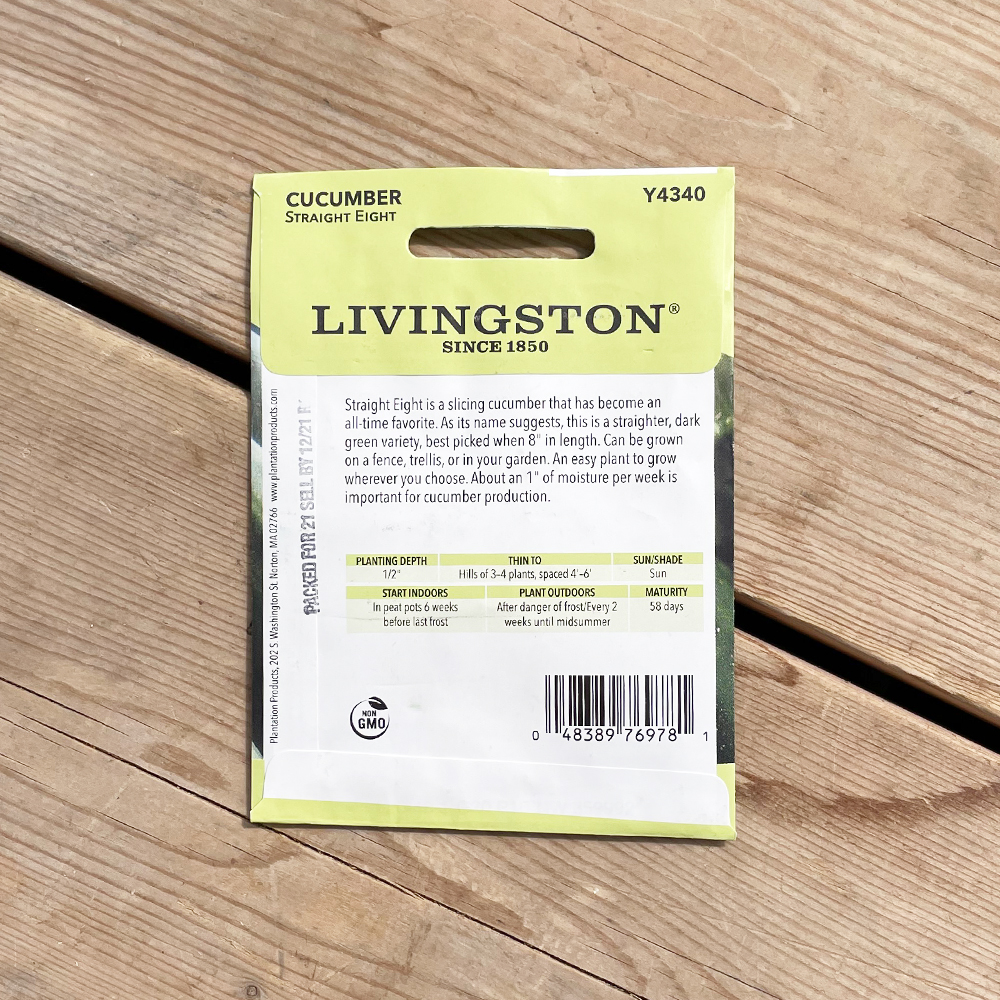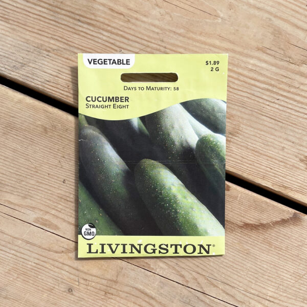 Straight Eight is a slicing cucumber that has become an all-time favourite. As its name suggests, this is a straighter, dark green variety, best picked when 8″ in length. Can be grown on a fence, trellis or in your garden. An easy plant to grow wherever you choose. About an 1″ of moisture per week is important for cucumber production.