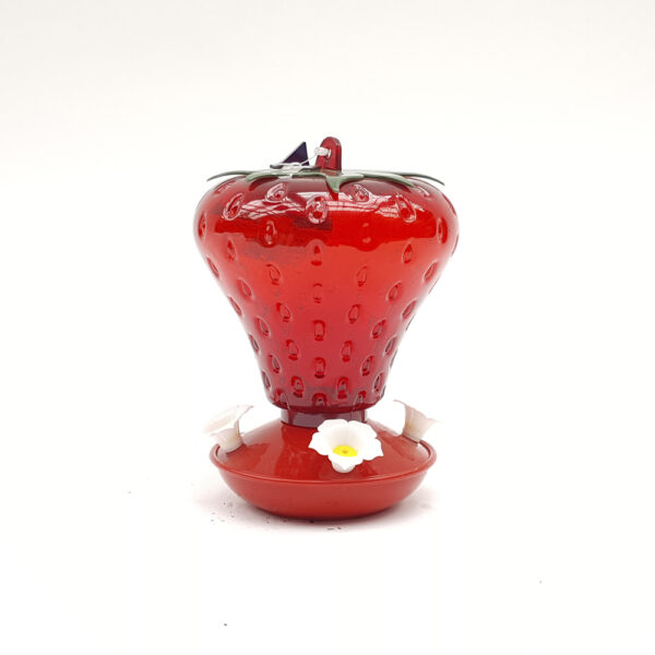 Hang this sweet little strawberry hummingbird feeder on a shepherd’s hook or near your window to watch hummingbirds visit for a sip. It’s easy-to-fill design and 40 ounce nectar capacity features 4 feeding ports for more birds to gather.