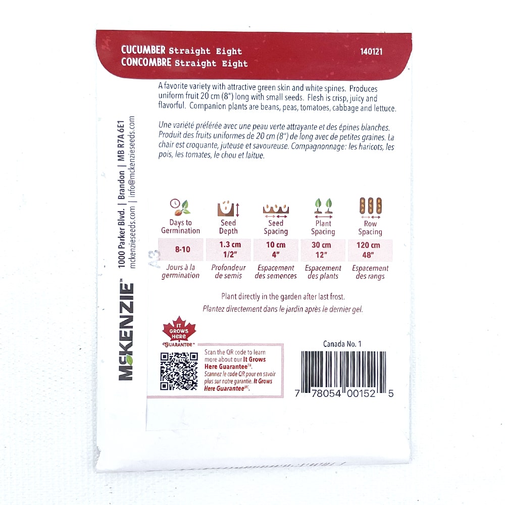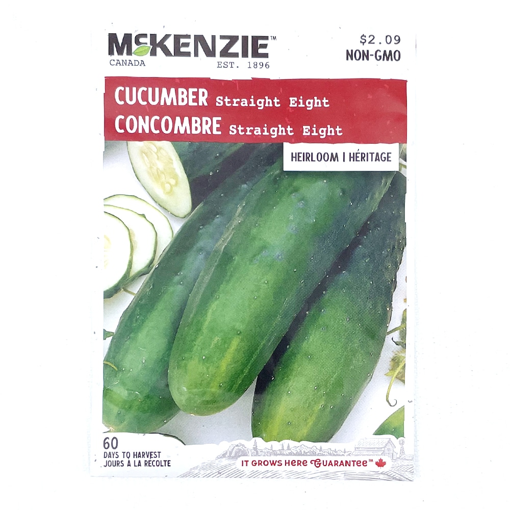 Straight Eight Cucumbers are a favorite among gardeners. With white spines lining attractive green skin around crisp and juicy white flesh, they are hard to resist. Features small seeds in very uniform 20 cm (8″) fruit.