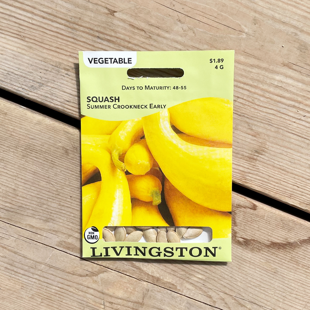 Summer Crookneck Early Squash is known for its taste and easy in growing. It is a bush-type squash, low growing and dense. The squash is deep yellow in colour with a curved neck and plump blossom end. For continuous harvest, pick when squash are 6″ long. Simply delicious fresh, fried, steamed and baked.