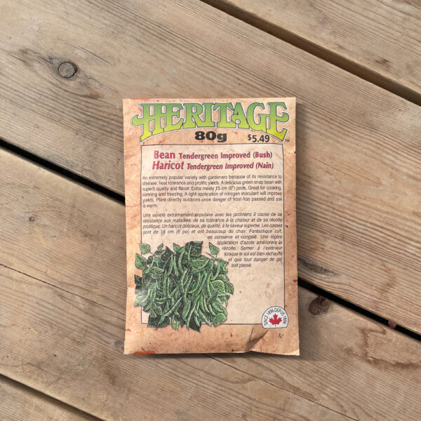Tendergreen Improved Bush Beans are a tender, smooth, very meaty green bean. This bush variety is extremely popular with gardeners because of its resistance to disease, heat tolerance, and prolific yields. 15 cm (6″) long, straight pods make this an ideal candidate for fresh table use or for freezing.