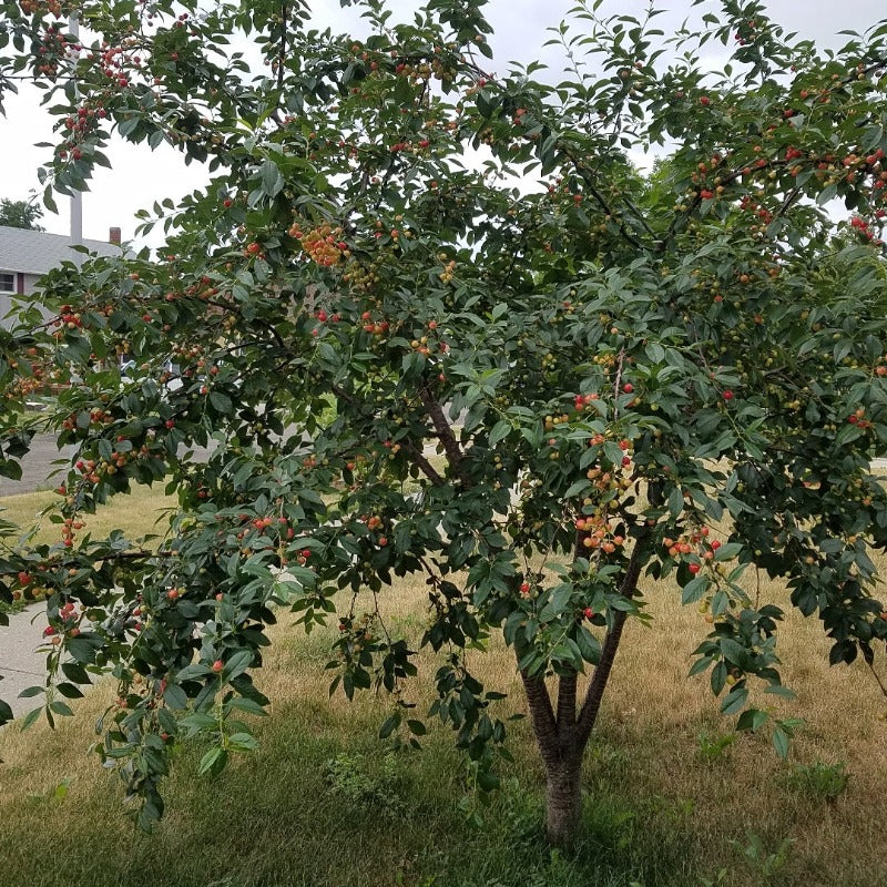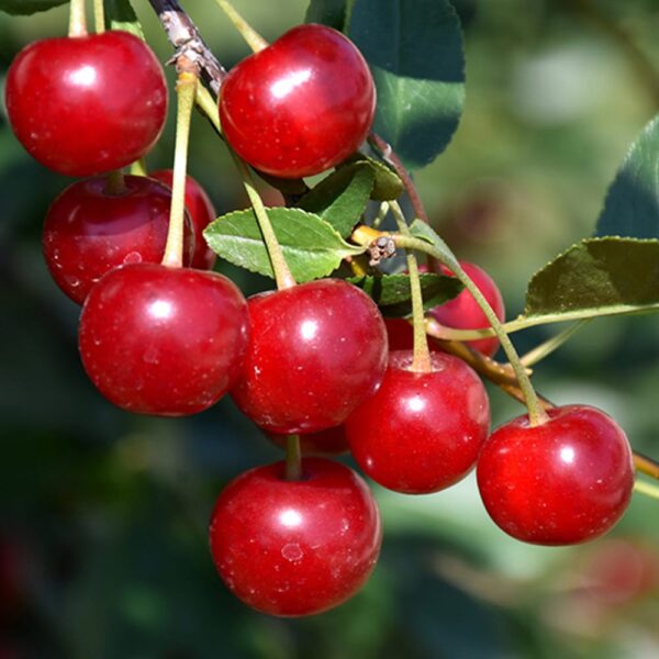 Valentine Cherry (tree form) is a small tree that is typically grown for its edible qualities. It produces cherry red round fruit (technically ‘drupes’) with red flesh which are usually ready for picking in late summer. Note that the fruits have hard inedible pits inside which must be removed before eating or processing. The fruits have a tart taste and a firm texture.