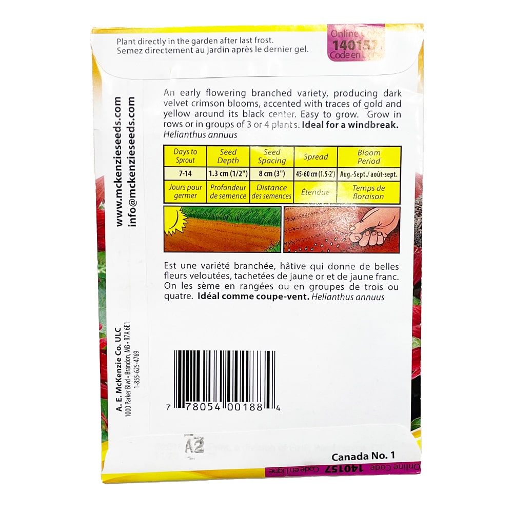 The Velvet Queen Sunflower are a branched variety that blooms early. These sunflowers produce dark velvet crimson blooms that are accented with traces of gold and yellow around a black centre. These easy to grow varieties are a wonderful feature in the garden.