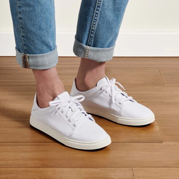 The White Leather Pehuea Lī īlī sneaker from Olukai is comfortable, lightweight and breathable. Featuring an airy, all-mesh upper, this energetic shoe is always ready for adventure, no matter where you’re heading. Additionally, there is a versatile Drop-In Heel® for shoe or slide functionality, embroidered and embossed logos, and flat laces.