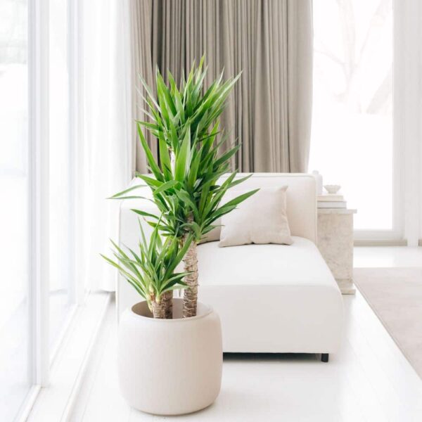 The Yucca tree is versatile, easy to care for, and slow growing. The striking foliage complements a variety of décor yet won’t blend into the background. In nature, every plant is unique! Your actual plant may vary in size and shape from the pictured plant.