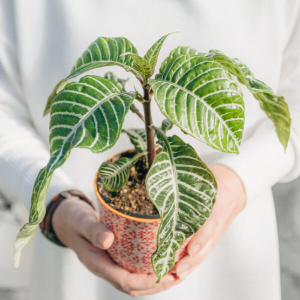 The bright contrasting veins on the shiny dark green leaves of the Zebra Plant make this plant ideal for tables and desks. They look great in bright coloured pots and paired with calathea, false aralia, or chinese evergreen. In nature, every plant is unique! Your actual plant may vary in size and shape from the pictured plant.